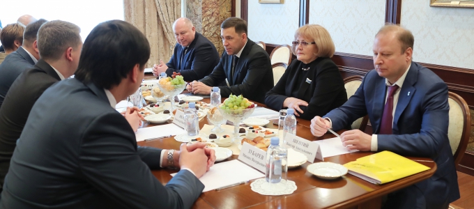 Губернатор Евгений Куйвашев обсудил с руководителями фракций Законодательного Собрания Свердловской области поправки в Конституцию Российской Федерации. Встреча состоялась 12 марта до начала внеочередного заседания регионального парламента, одним из вопросов повестки которого станет внесение изменений в основной закон государства. Участие в ней приняла также председатель Заксобрания Людмила Бабушкина.