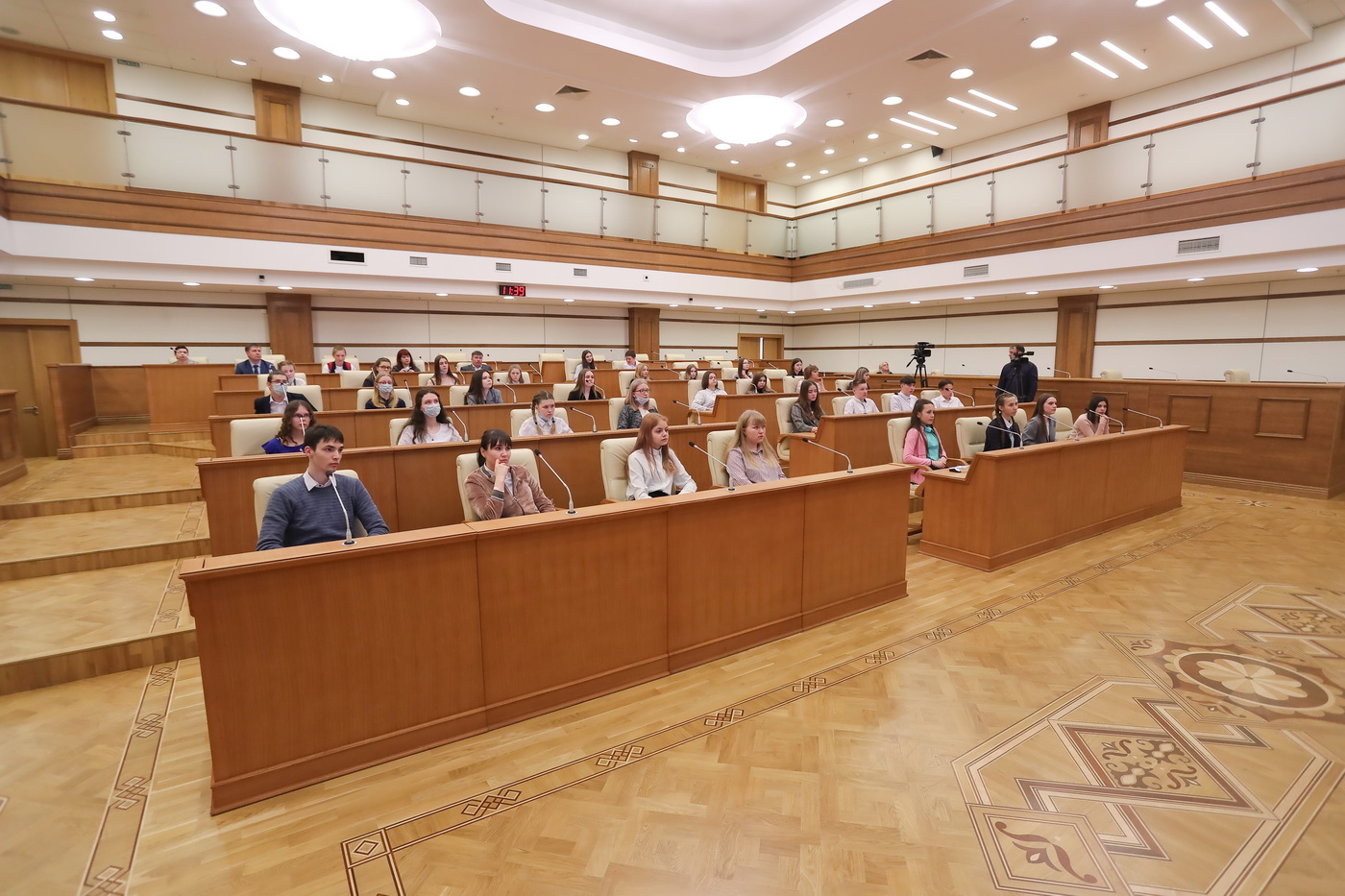 В малом зале заседаний Законодательного Собрания юные гости смогли познакомиться с системой электронного голосования депутатов и задать интересующие их вопросы председателю регионального парламента. В частности, речь шла о направлениях развития образования, о создании центров «Точка роста», о совершенствовании системы здравоохранении и о многом, многом другом.