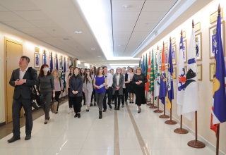 Председатель Законодательного Собрания провела для гостей из Камышловского района экскурсию по зданию регионального парламента. Школьники смогли увидеть расположенный в нем музей Законодательного Собрания, зал официальных символов муниципальных образований нашего региона, экспозицию «Межпарламентские связи Законодательного Собрания Свердловской области», большой зал заседаний регионального парламента, портретную галерею руководителей законодательных (представительных) органов Свердловской области с 1934 года по настоящее время.