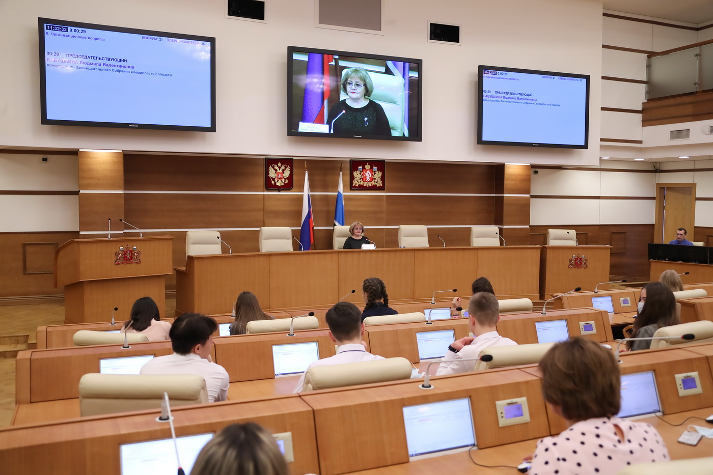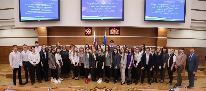 В региональном парламенте состоялась встреча председателя Законодательного Собрания Свердловской области Людмилы Бабушкиной с делегацией учащихся общеобразовательных организаций Камышловского муниципального района.