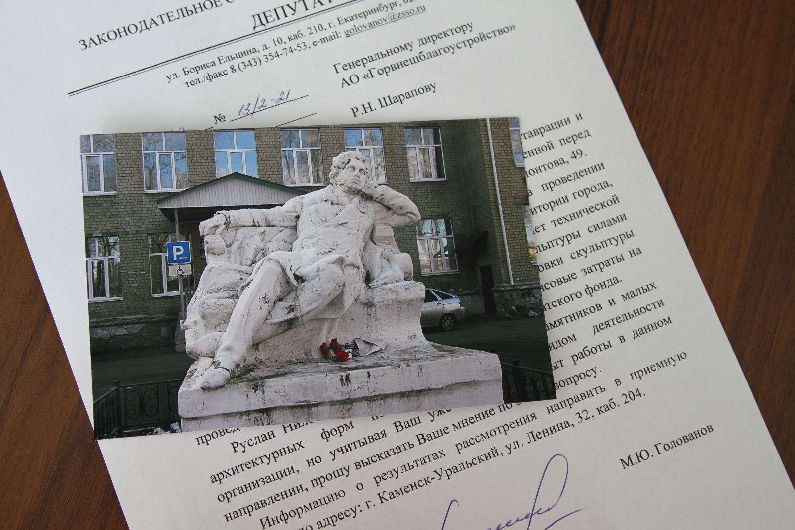 «Понятно, что нерукотворный памятник, который Пушкин себе воздвиг, вечен. Но раз уж в Каменске есть место его памяти, то нужно либо привести его в порядок, либо демонтировать, чтобы не бросать тень запустения и позора на светило русской поэзии», – обратилась к парламентарию Фаина Куфтина.