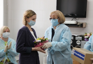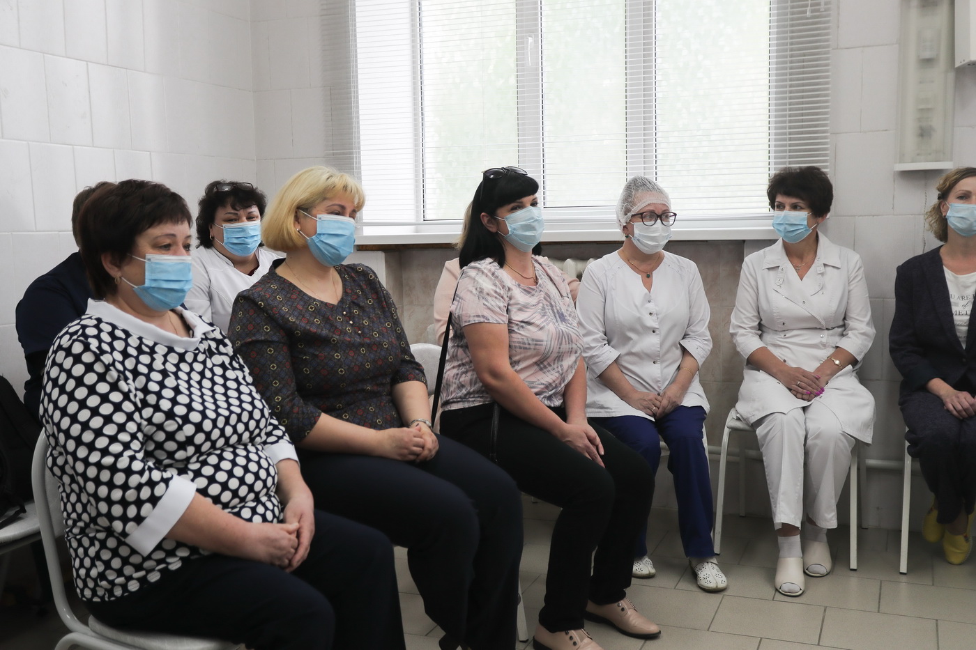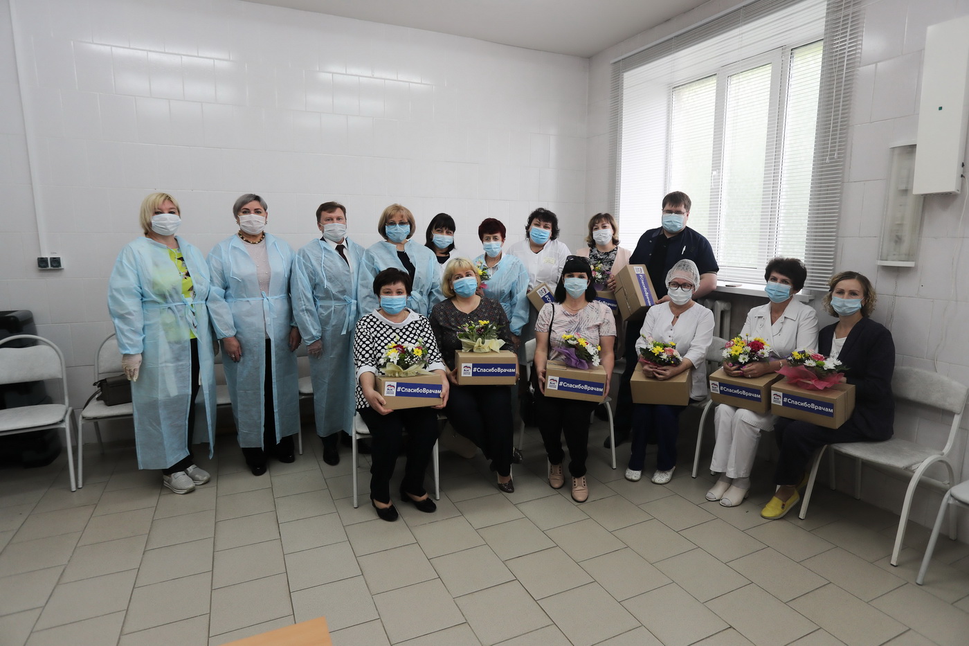 Председатель Законодательного Собрания вместе с секретарем ячейки партии «Единая Россия», председателем Думы Камышловского муниципального района Людмилой Готкис и секретарем ячейки «Единой России», главой Камышлова Алексеем Половниковым встретилась с врачами Камышловской центральной районной больницы. Людмила Бабушкина поблагодарила врачей и медицинский персонал, которые работают на передовой борьбы с распространением COVID-19, и вручили чайные наборы. В подарке – чай, кофе, шоколад, печенье, конфеты – продукты, которые несут тепло и позволяют восстановить силы.
