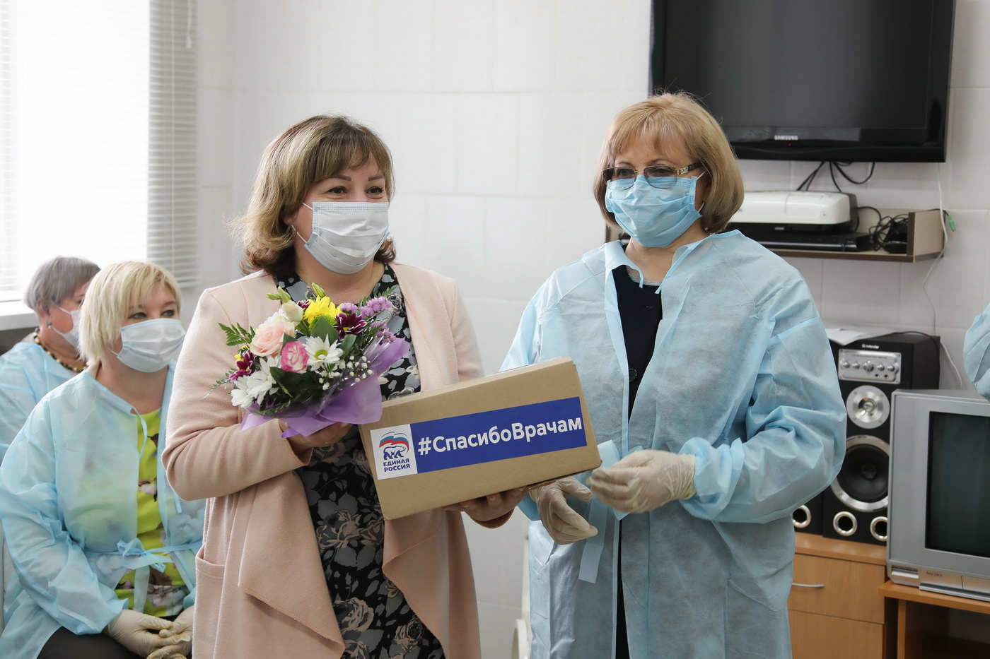 Отметим, что врачи и персонал Камышловской центральной районной больницы получили 30 подарков от партии «Единая Россия». Всего в Свердловской области их вручено 4 тысячи.