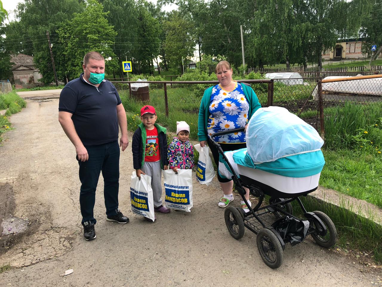 Каждой семье депутат привёз продуктовые наборы, а для детей подготовил отдельные пакеты со сладостями.