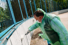 Заместитель председателя Законодательного Собрания Свердловской области Виктор Маслаков принял участие в работах по ремонту одного из футбольных кортов Ленинского района, расположенного во дворе дома № 61 по улице Амундсена.