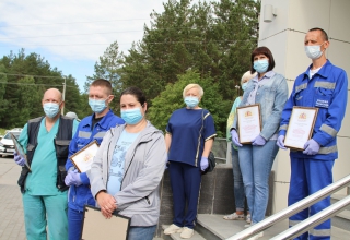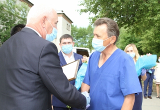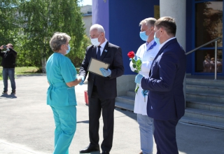 С площадки перед госпиталем Виктор Якимов и Алексей Шмыков отправились на станцию скорой помощи, в территориальный отдел Роспотребнадзора, в городскую больницу №2 и детскую больницу. Для каждого коллектива у парламентария и мэра нашлись душевные поздравления и добрые пожелания. В профессиональный праздник работников здравоохранения почетные грамоты и благодарственные письма Заксобрания, главы города и председателя городской думы, а также главных врачей медучреждений получили около 200 каменских медиков.