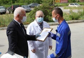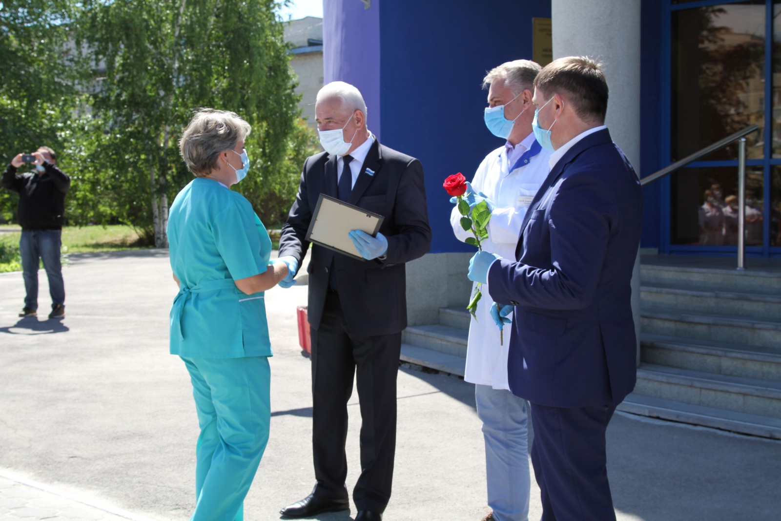 Вслед за парламентарием почетные грамоты и благодарственные письма докторам, медсестрам, другим работникам взрослой больницы и специализированных учреждений здравоохранения вручили глава города Алексей Шмыков и главный врач взрослой больницы Манарбек Чарипов.
