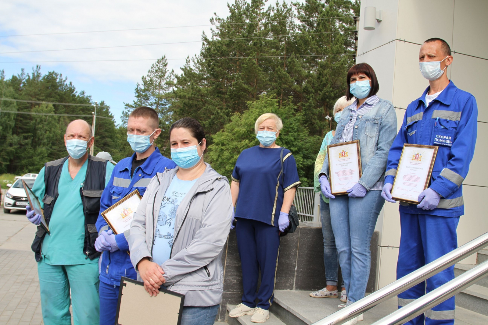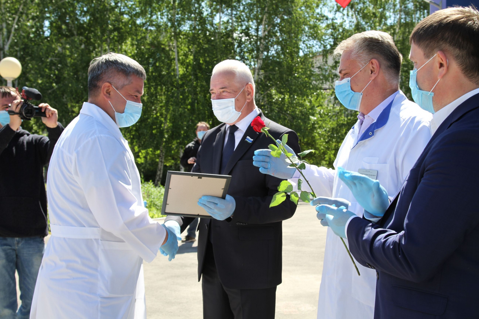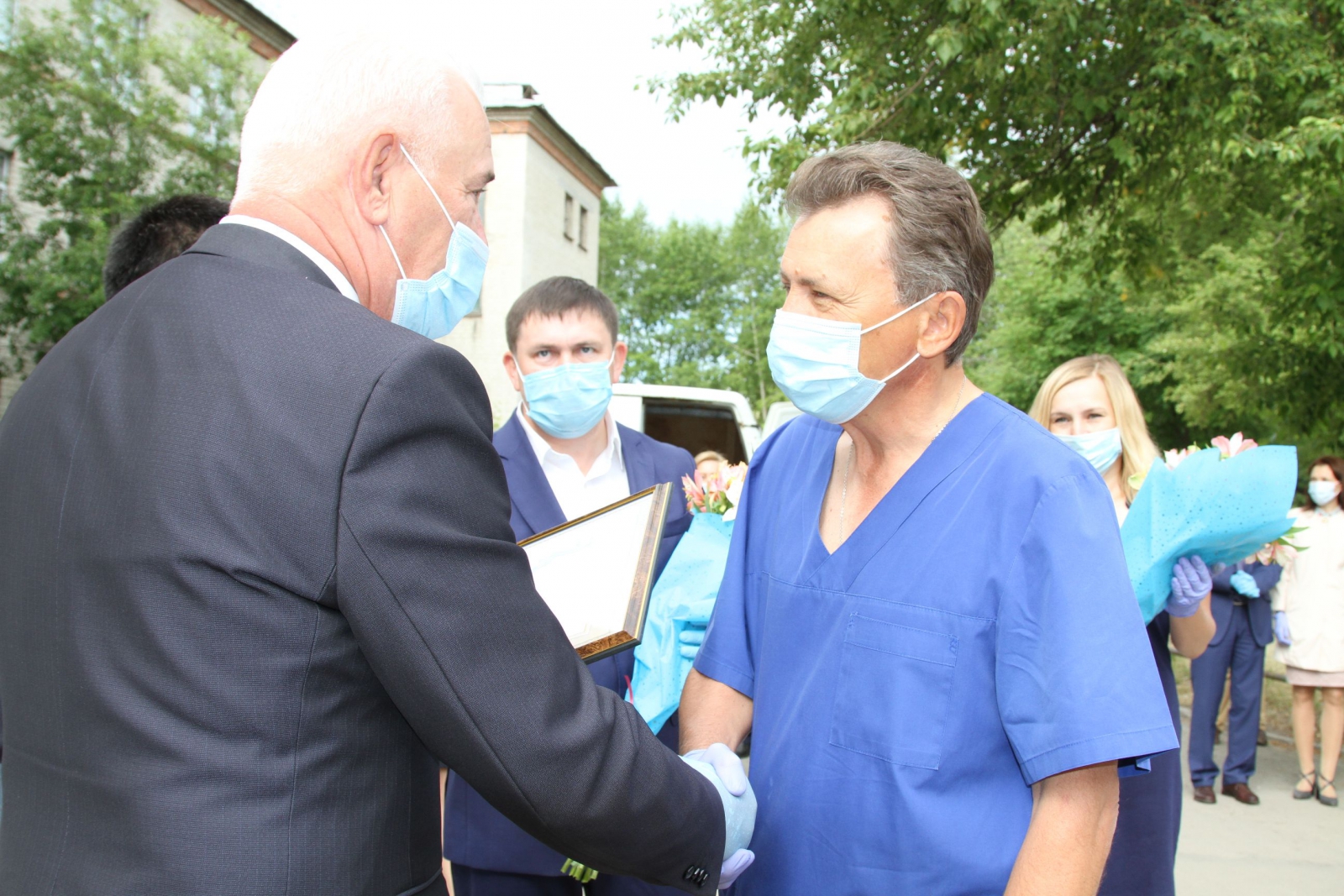 Глава города Алексей Шмыков и вице-спикер Заксобрания Виктор Якимов поздравляли медиков практически на рабочих местах. Мэр и парламентарий встретились с докторами, фельдшерами, санитарами и другими работниками здравоохранения на пяти площадках перед корпусами взрослой и детской больниц, станции скорой помощи, центра гигиены и эпидемиологии.