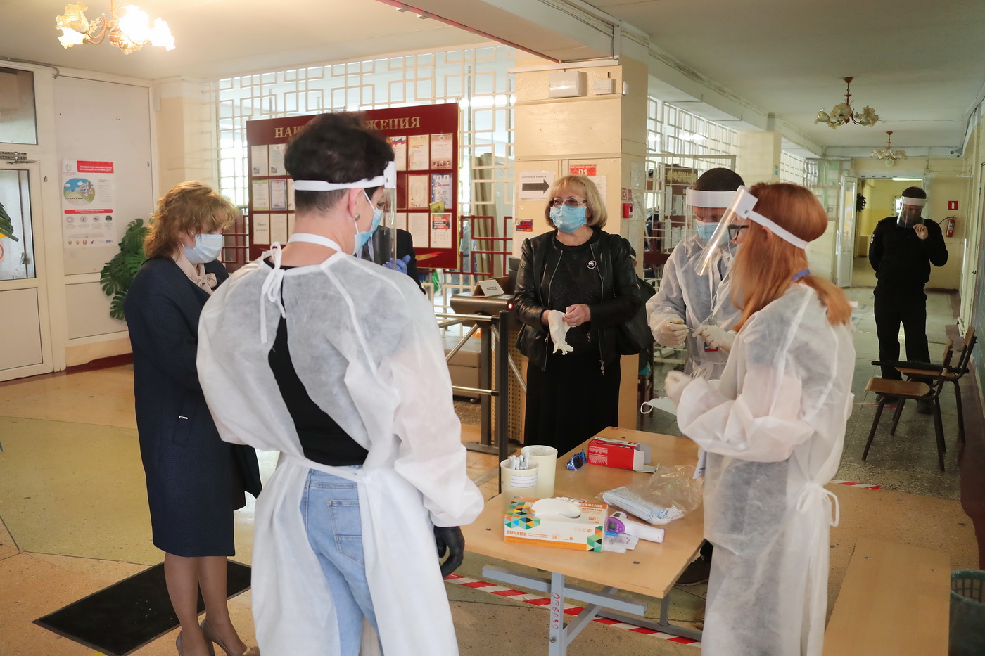 Председатель Законодательного Собрания лично убедилась, что процесс голосования организован в соответствии со всеми требованиями санитарной безопасности: на избирательных участках отдельные входы и выходы, члены избирательных комиссий экипированы в специальные защитные костюмы, маски и перчатки. Все пришедшие на участки граждане проходят санитарную обработку рук, на входе им выдаются маски, перчатки, индивидуальная шариковая ручка. Строго соблюдается социальная дистанция.