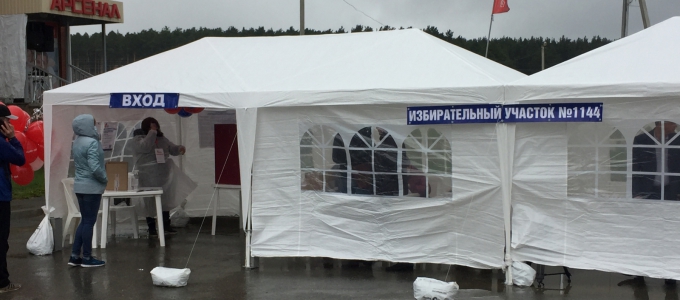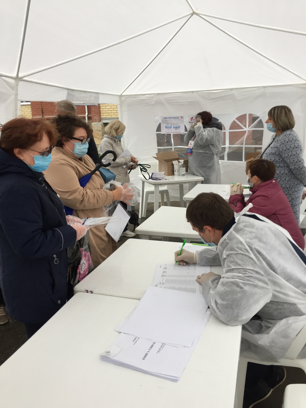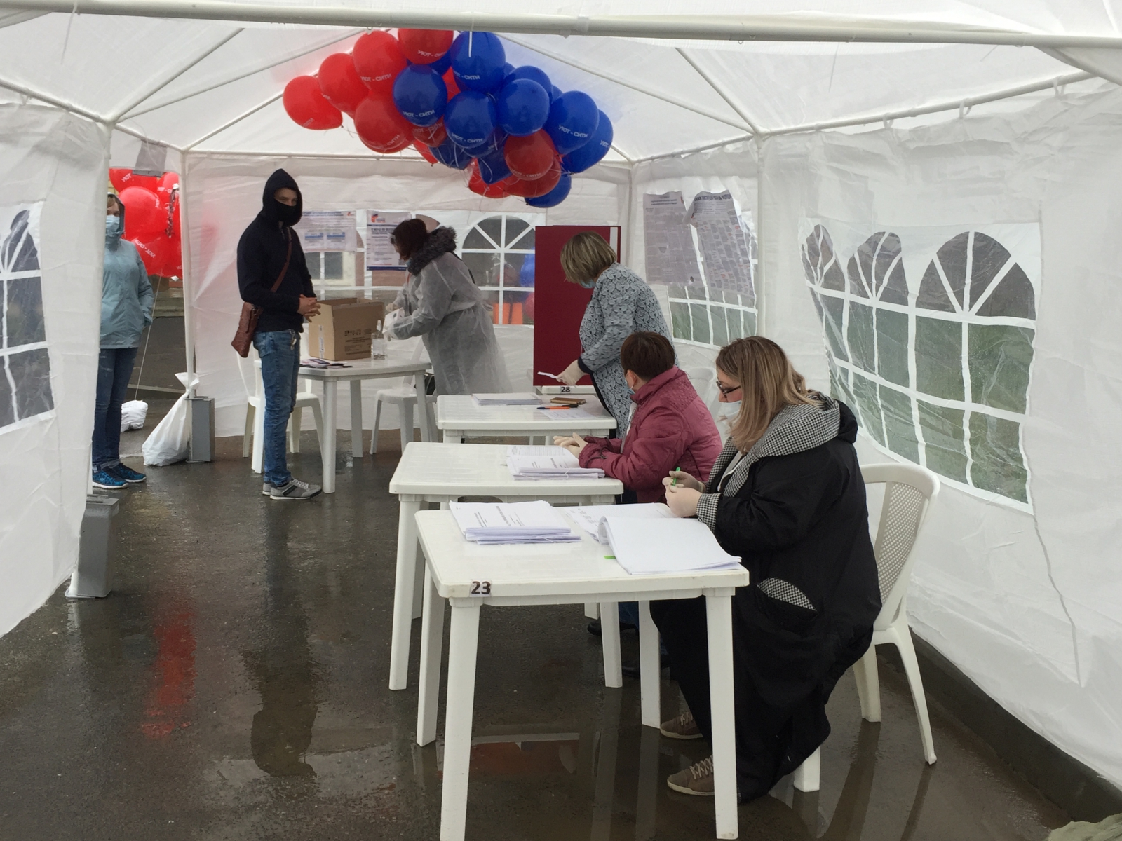 Мобильные палатки защитили избирателей от непогоды, средства индивидуальной защиты и наличие условий для соблюдения социальной дистанции позволили быстро и безопасно провести голосование.