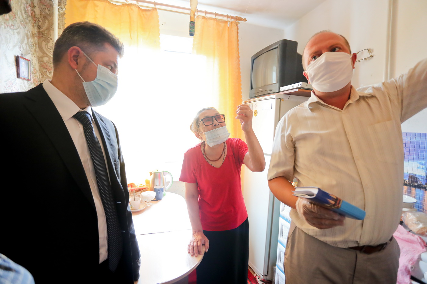 Пенсионерка проживает в однокомнатной квартире вместе с сыном-инвалидом. В ходе встречи она озвучила просьбу помочь в решении ряда житейских проблем. В частности, попросила провести ревизию системы вентиляции, помочь с заменой старого покрытия на балконе и ремонта входной группы в квартиру.