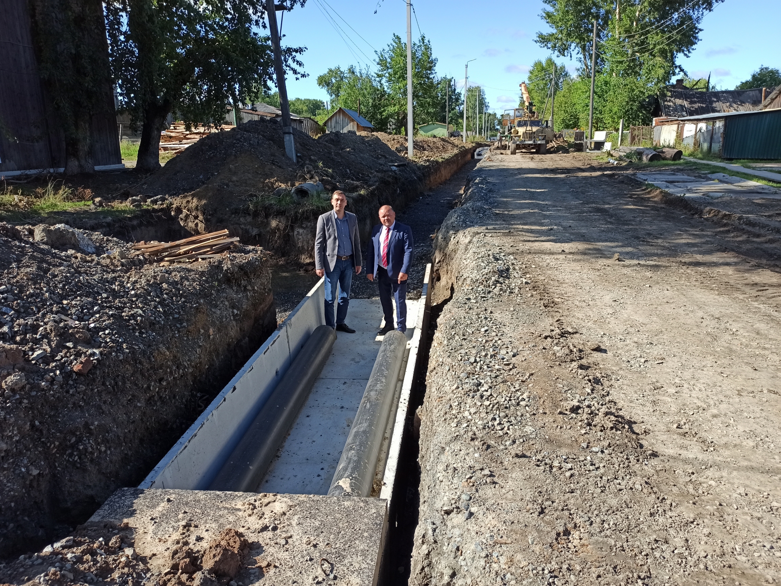 С первым заместителем главы городского округа вышли на объекты, где и обсудили ход исполнения текущих контрактов: строительство новой теплотрассы, асфальтирование дорог и тротуаров, модернизацию уличного освещения, капитальный ремонт водопровода в п. Кошай, обустройство контейнерных площадок для сбора ТБО.