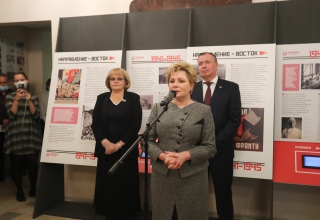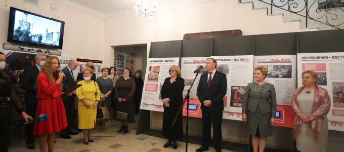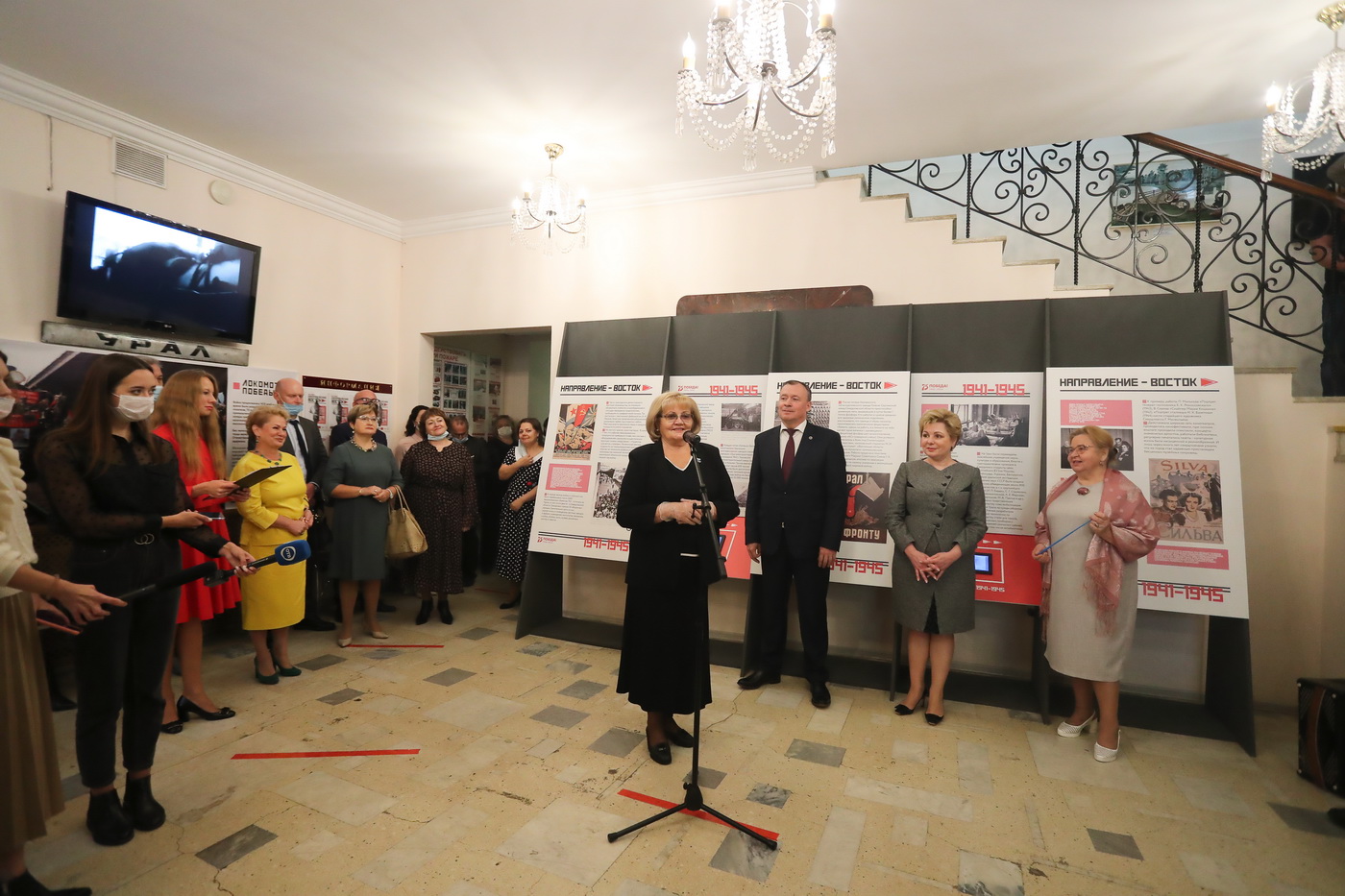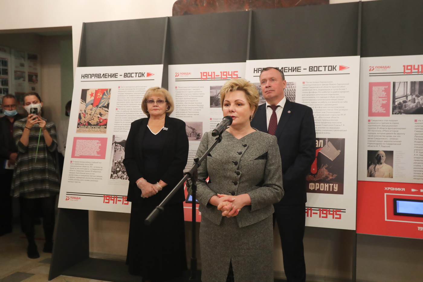 Председатель Законодательного Собрания Свердловской области Людмила Бабушкина, исполняющий обязанности главы региона Алексей Орлов, генеральный директор Музеев Московского Кремля, заслуженный работник культуры Российской Федерации Елена Гагарина приняли участие в открытии выставки «НАПРАВЛЕНИЕ - ВОСТОК. Эвакуация сокровищ Московской Оружейной палаты в Свердловск», которая развернулась в Музее истории камнерезного и ювелирного искусства.