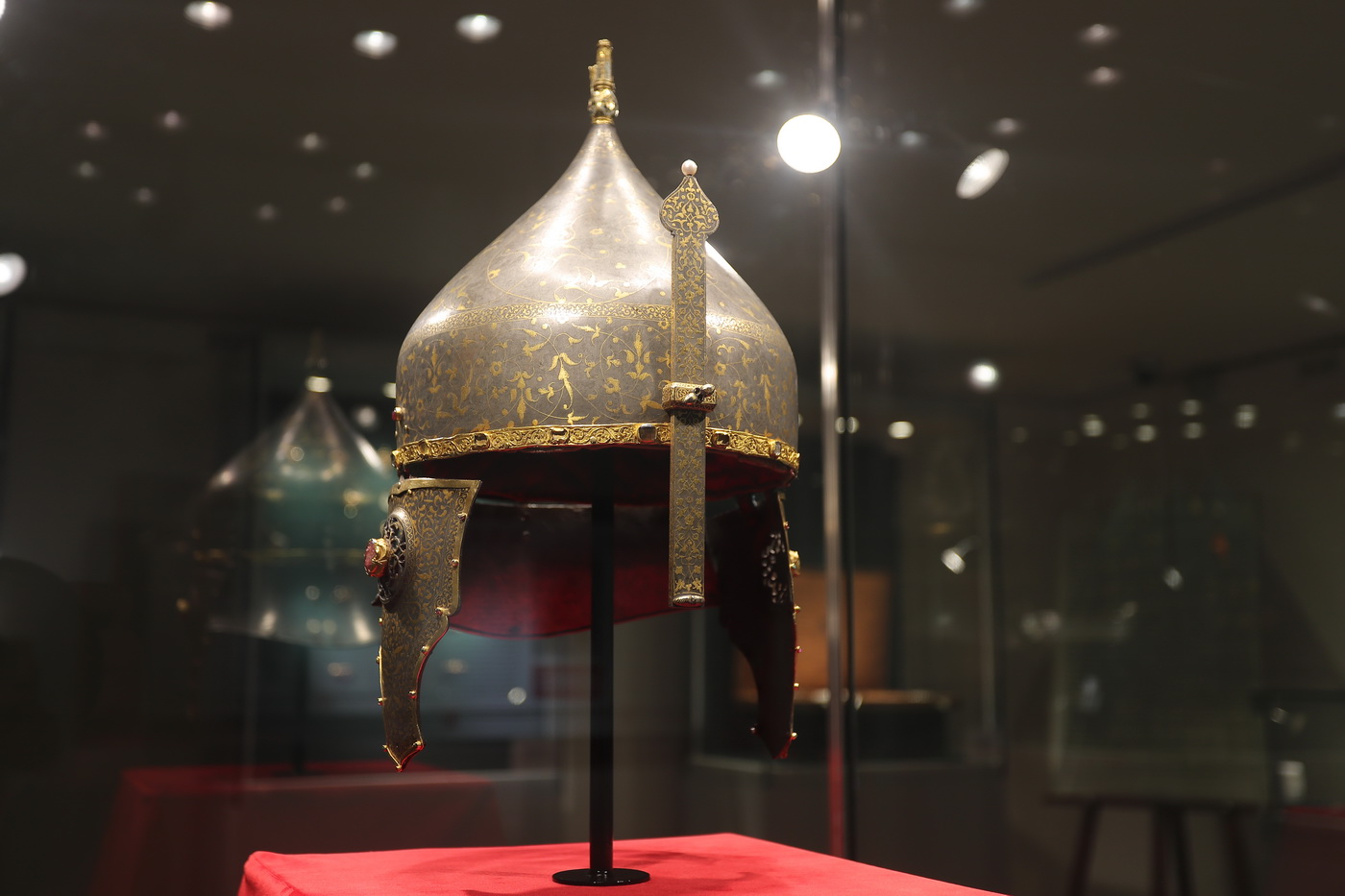 Центральный экспонат выставки – шлем XVII века из постоянной экспозиции Оружейной палаты, известный как «Шапка Кучумовская». Легенда связывает его с именем сибирского хана Кучума, чьи владения вошли в состав Московского государства в результате походов казачьего атамана Ермака.