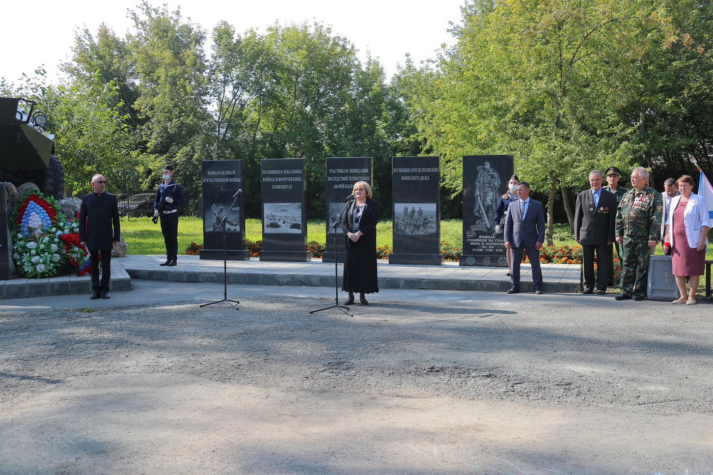 Председатель Законодательного Собрания Свердловской области Людмила Бабушкина в городском округе Богданович приняла участие в открытии обновленной Аллеи славы – городского мемориального комплекса, посвященного памяти богдановичцев, павших в годы Великой Отечественной войны и в локальных вооруженных конфликтах при исполнении воинского и служебного долга.