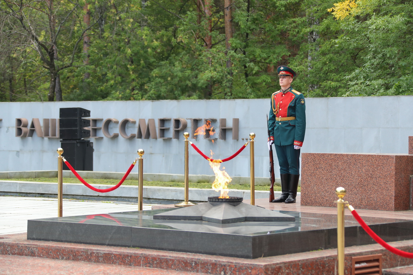 В Екатеринбурге 3 сентября почтили память героев Второй мировой войны. Цветы к Вечному огню возложили председатель Законодательного Собрания Свердловской области Людмила Бабушкина, заместитель губернатора Свердловской области Павел Креков, исполняющий обязанности командующего войсками Уральского округа Федеральной службы войск национальной гвардии России Сергей Захаров, временно исполняющий обязанности заместителя Командующего войсками Центрального военного округа по военно-политической работе Андрей Соболев, глава Екатеринбурга Александр Высокинский, представители городской думы, дипломатического корпуса, религиозных конфессий.