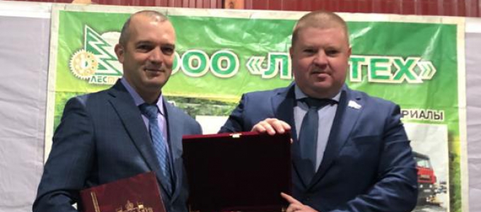 Депутат Законодательного Собрания Свердловской области Кирилл Некрасов по поручению председателя Людмилы Валентиновны Бабушкиной поздравил генерального директора Александра Шестакова и весь коллектив ООО «ЛЕСТЕХ» с юбилеем и с Днём работников леса.