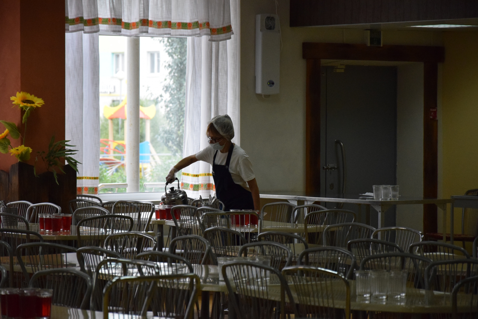 «Дети приходят в столовую строго по графику: столы накрываются 18 раз. Наполнение обеденного зала – не более половины, чтобы соблюдалась социальная дистанция. При вместимости в 320 человек на обед сейчас приходят не больше 120 учеников», – рассказала директор образовательного учреждения Любовь Безбородько.