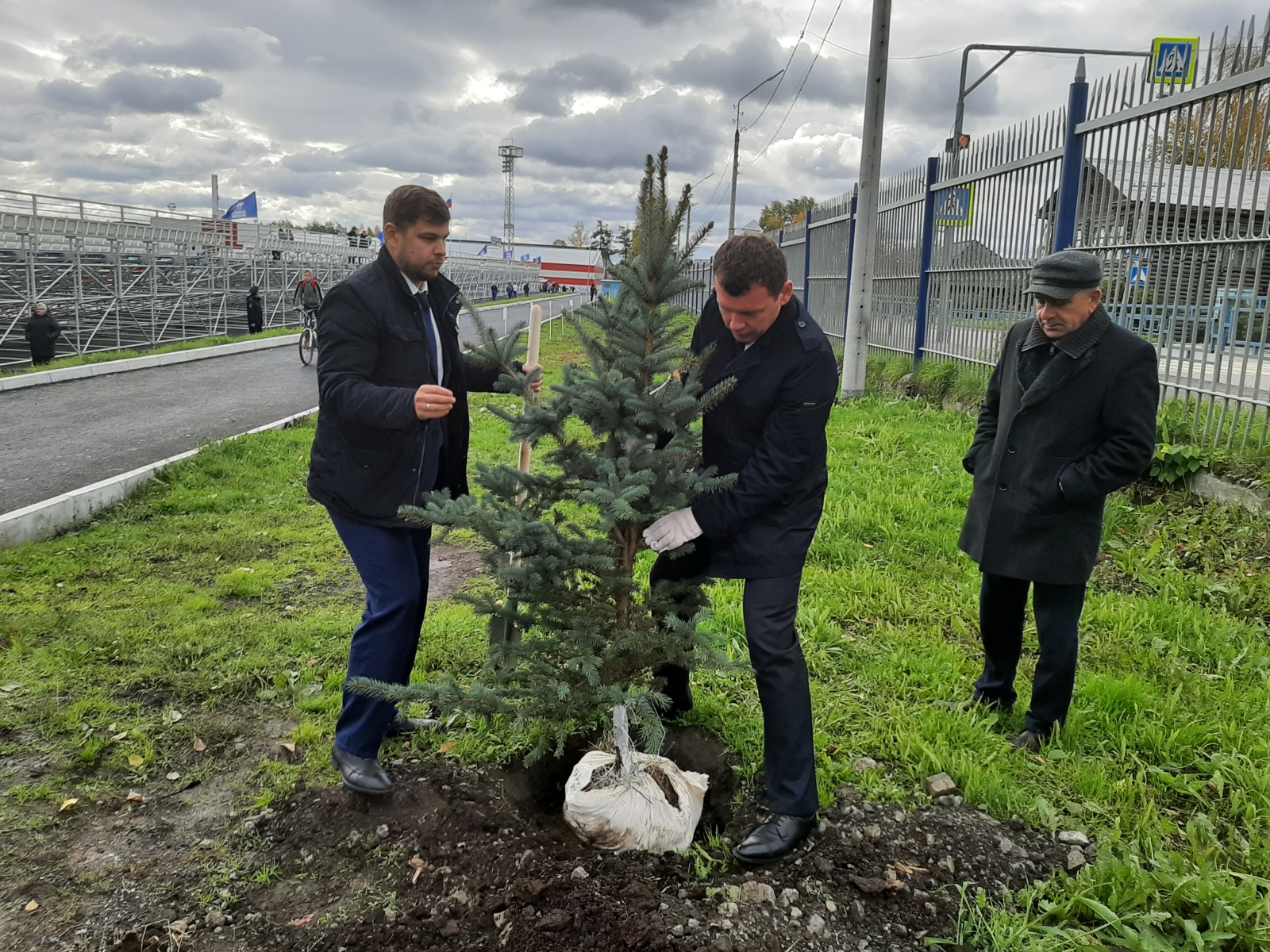 На церемонии торжественного открытия стадиона присутствовал министр физической культуры и спорта Свердловской области Леонид Рапопорт. Он поздравил жителей округа и пожелал воспитанникам спортшколы профессиональных успехов. В завершении церемонии министр и депутат посадили именные голубые ели. Специальная аллея в честь памятного события была заложена сегодня депутатами, руководителями учреждений и предприятий города. Затем министр осмотрел ледовую арену. Депутат Дмитрий Жуков предложил Леониду Ароновичу в следующий раз выйти на лед и сыграть в хоккей вместе с командой администрации города, а также пообещал дополнительно выделить 130 тысяч рублей на ремонт раздевалок для юных хоккеистов.
