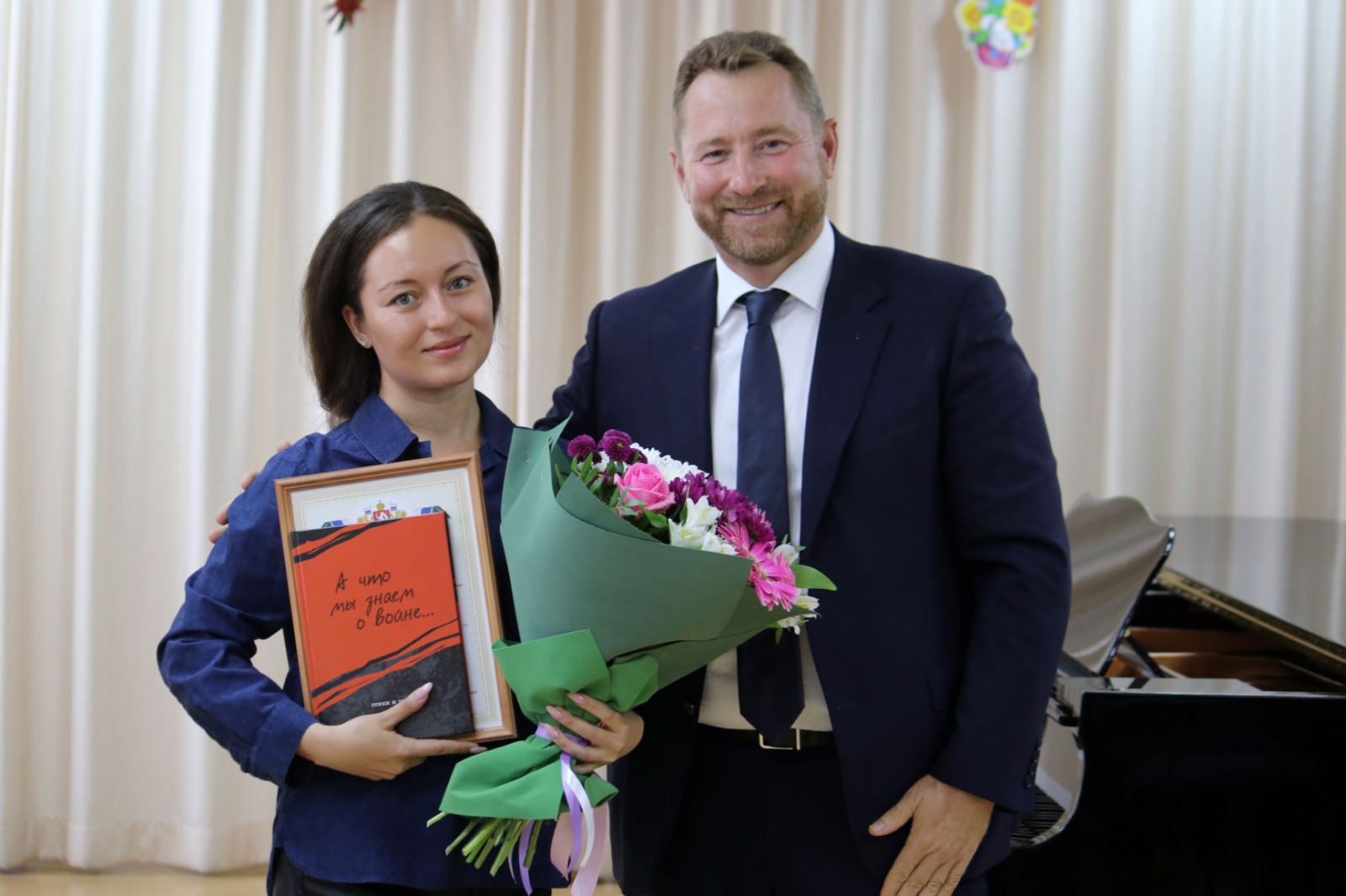 Далее Вячеслав Брозовский вручил ученикам и педагогам Детской художественной школы благодарственные письма за участие в издании сборника поэзии и прозы «А что мы знаем о войне…», посвященного 75-летию Великой Победы.