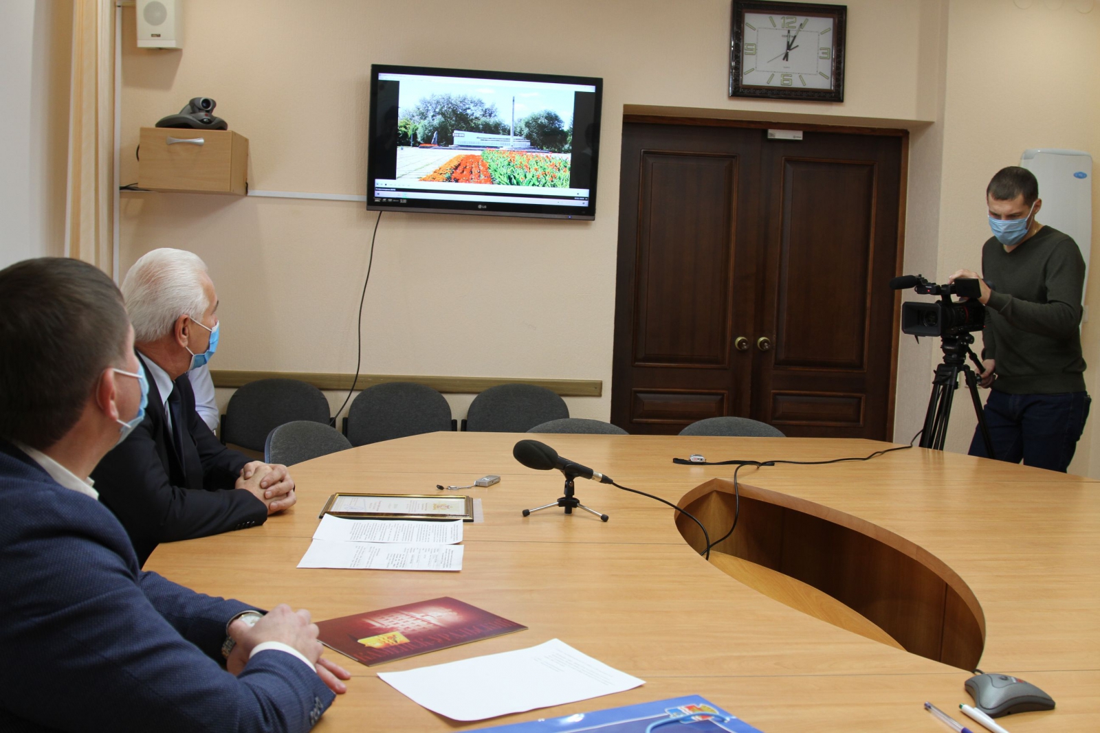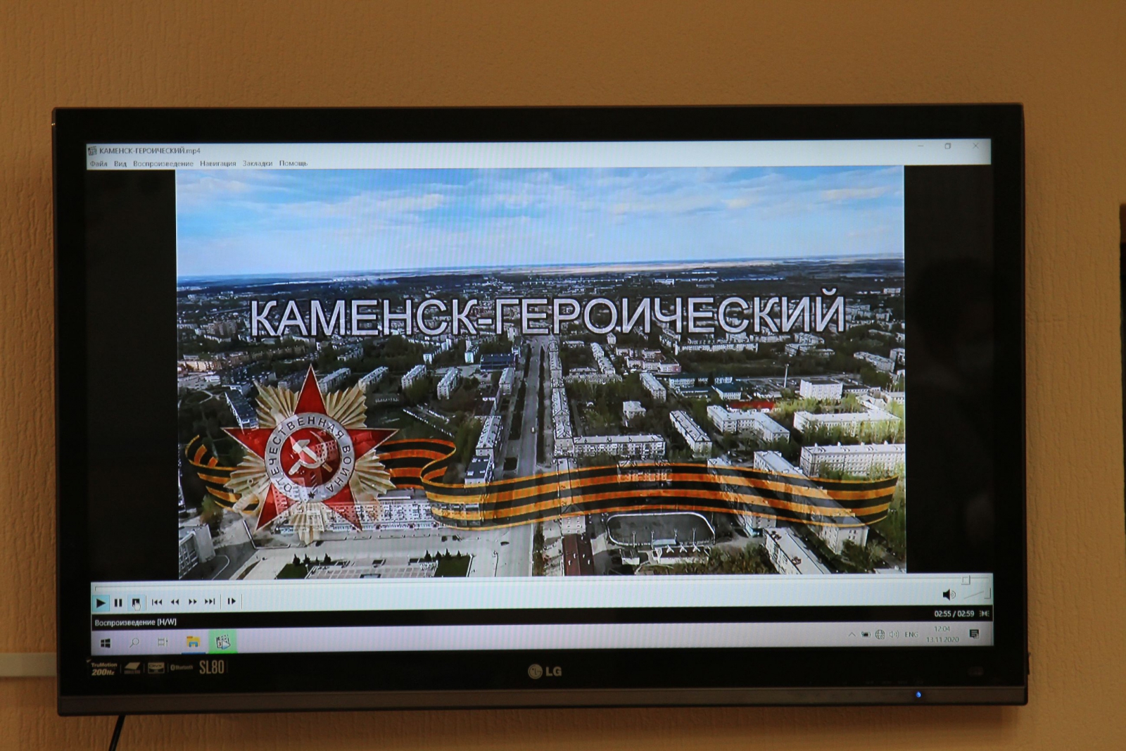 Первым делом участники встречи посмотрели видеоролик «Каменск героический». Он построен на диалоге двух школьниц о трудовой и ратной доблести Каменска и его жителей. Софии Пестрецовой помогает в кадре Екатерина Головина.
