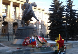 Торжественное мероприятие у штаба Центрального военного округа было посвящено 124-й годовщине со дня рождения великого полководца. Отдать дань памяти Георгия Жукова пришли представители органов власти, руководители силовых и военных структур.