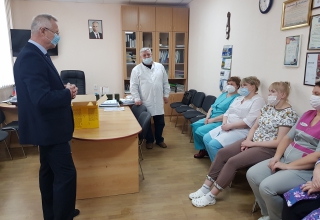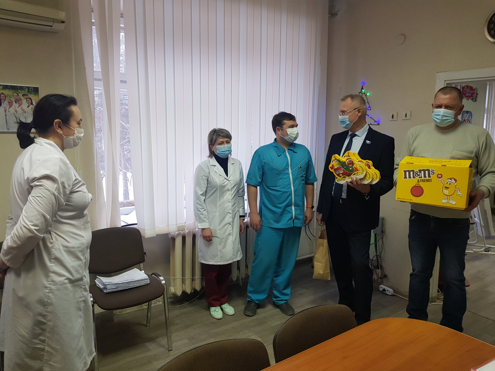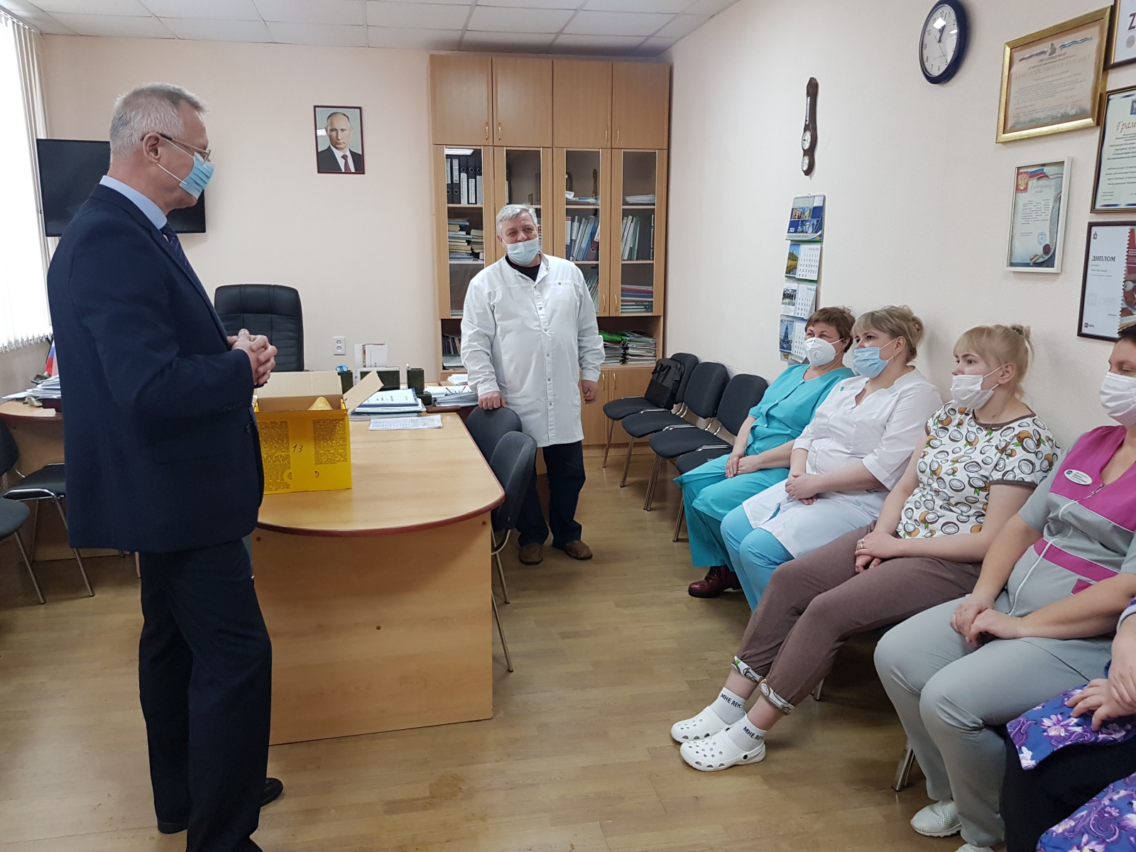В ходе встреч заместитель председателя Законодательного Собрания поблагодарил персонал больниц за самоотверженную работу по борьбе с новой короновирусной инфекцией. Передавая подарки для детей медицинских работников, работающих в «красной зоне», Владимир Александрович подчеркнул, что очень приятно вручать подарки и создавать при этом праздничное настроение.