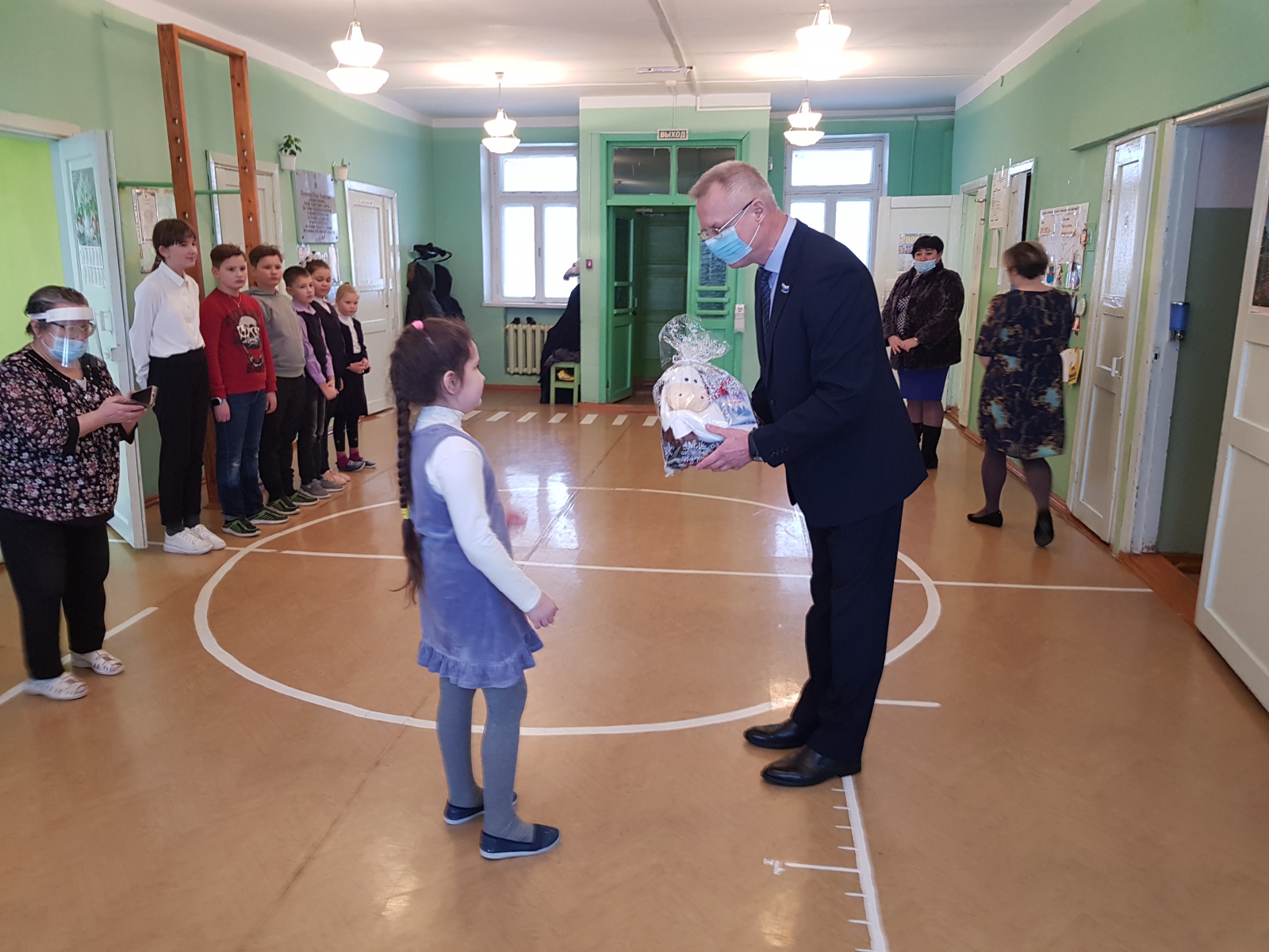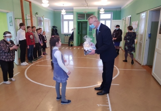 Новогодние подарки также были вручены первоклассникам, обучающимся в сельских школах Голендухино, Клевакино, Останино, поселка Озерный Режевского района.