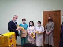 В ходе встреч заместитель председателя Законодательного Собрания поблагодарил персонал больниц за самоотверженную работу по борьбе с новой короновирусной инфекцией. Передавая подарки для детей медицинских работников, работающих в «красной зоне», Владимир Александрович подчеркнул, что очень приятно вручать подарки и создавать при этом праздничное настроение.