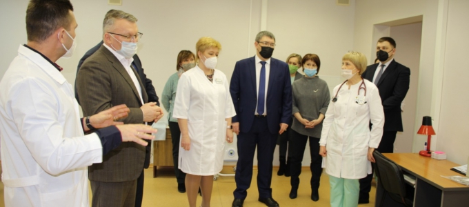 Вместе с главой городского округа Сергеем Черепановым депутат посетил врачебную амбулаторию посёлка Таёжный. Год назад жители поселка на сельском сходе обратились к парламентарию с просьбой восстановить работу кабинета физиотерапии. И сейчас более 2000 жителей (из них 250 детей) поселков Таежный, Чащавита, Ёлкино и других вновь могут проходить более десяти видов медицинских процедур.