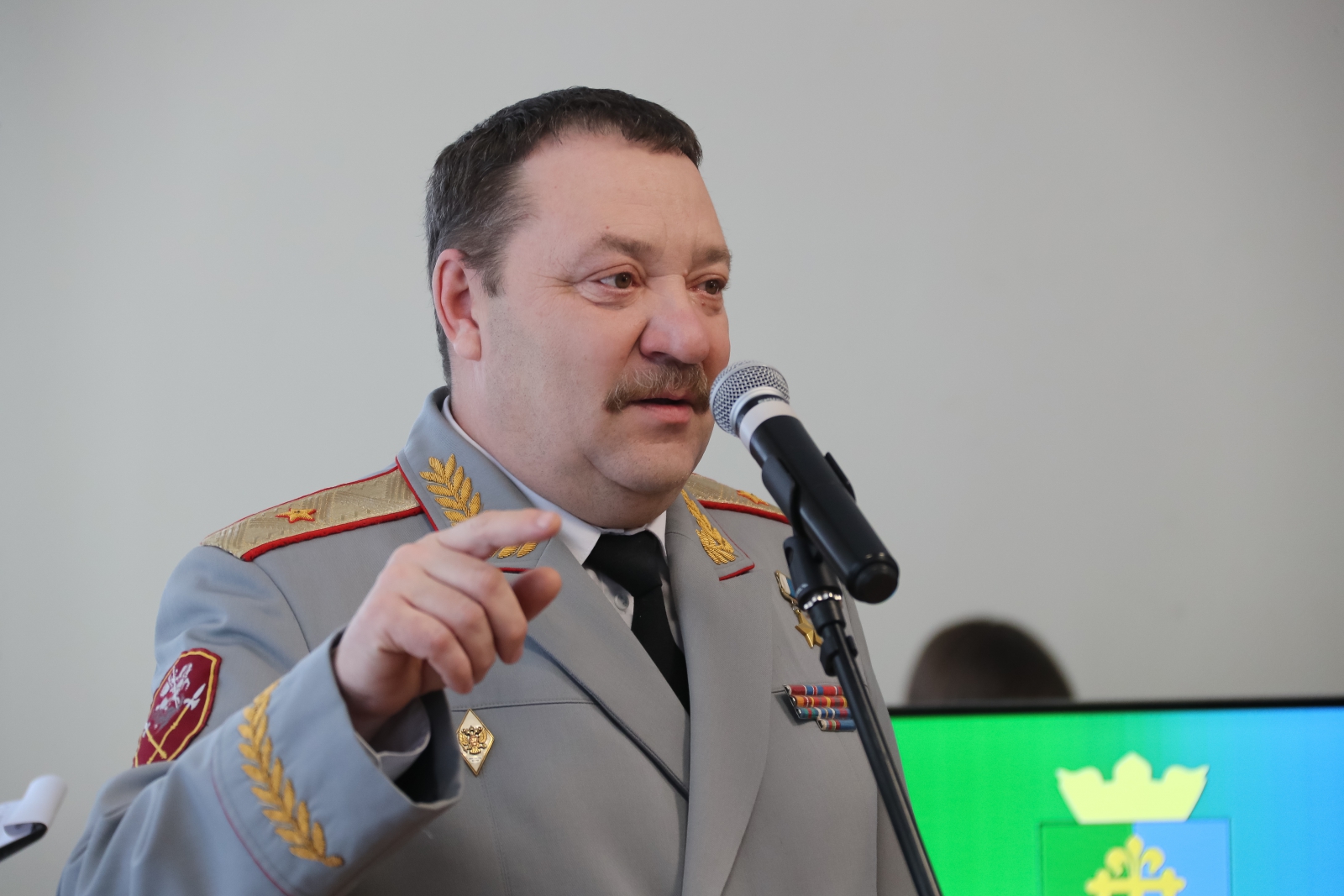 Здесь, в этом зале, герои - военнослужащие и гражданский летчик, решавшие сложнейшие задачи на территории нашей страны и за ее пределами, проявившие стойкость и мужество при исполнении своих обязанностей. Это четыре героя чеченских кампаний и командир легендарного экипажа Ил-76, бежавшего из 378-дневного плена в Кандагаре - Владимир Ильич Шарпатов.