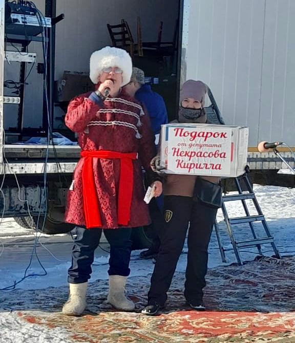 Ярмарочные ряды с самодельными игрушками и вкусными блинами, пирогами и травяными чаями встречали посетителей. Традиционно депутат вручил подарки победителям конкурса за лучший образ Масленицы «Ох, уж эта Масленица», и главный приз розыгрыша в с. Арамашево - электропечь.