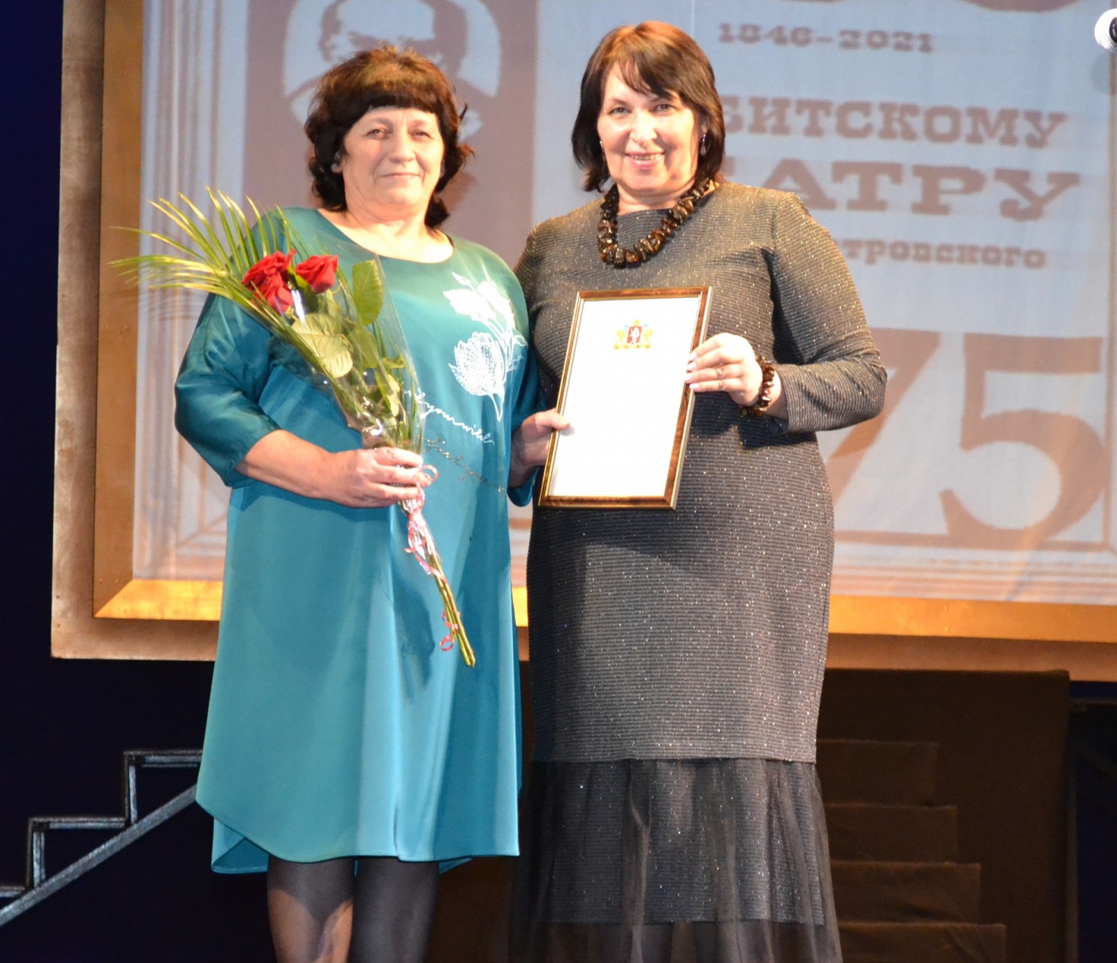 Елена Трескова от имени председателя Законодательного Собрания Свердловской области Л.В.Бабушкиной поздравила творческий коллектив Ирбитского театра со 175-летней юбилейной датой и вручила награды Законодательного Собрания Свердловской области.