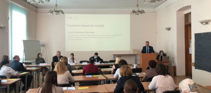 От Законодательного Собрания Свердловской области с приветственным словом к участникам семинара выступил председатель комитета по региональной политике и развитию местного самоуправления Михаил Ершов.