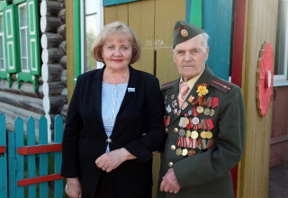 Побывав в Богдановиче, Людмила Бабушкина не смогла не навестить одного из выдающихся жителей этого города – ветерана Великой Отечественной войны, участника знаменитого Парада Победы на Красной Площади в Москве в 1945 году – Василия Ивановича Желомского.