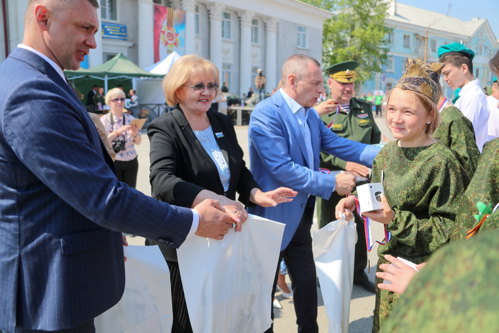 Председатель Законодательного Собрания Людмила Бабушкина совместно с главой города Павлом Мартьяновым, генеральным директором Богдановичского ОАО «Огнеупоры» Алексеем Юрковым, заместителем председателя Общественной палаты Свердловской области Сергеем Майзелем, Героем Росси Романом Шадриным вручила призы участникам и награды победителям младшей возрастной группы. По праву первое место в этой категории участников завоевала команда казачьего кадетского корпуса.
