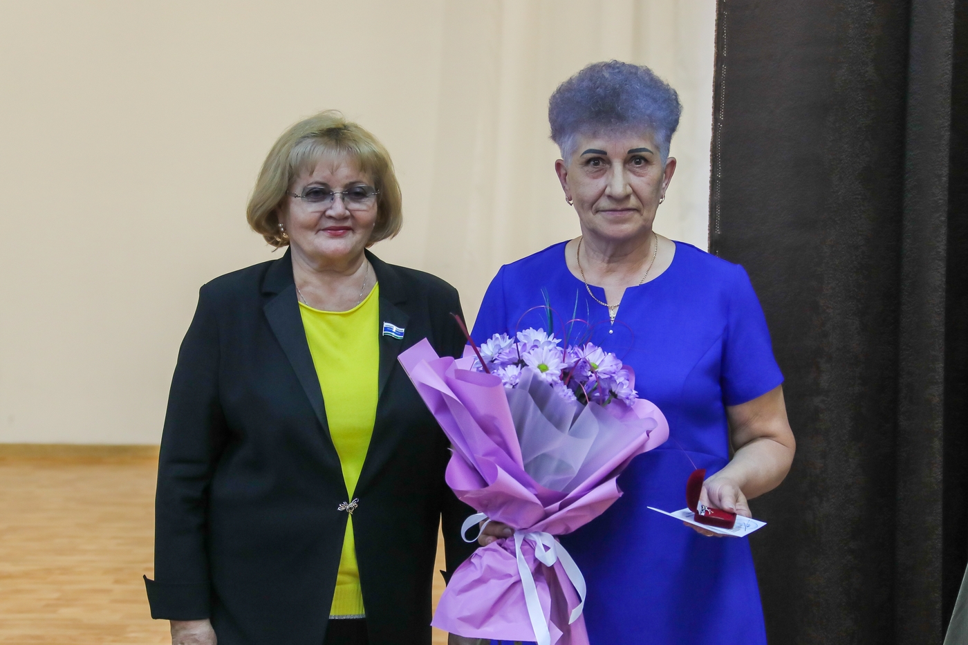 Серебряный знак Законодательного Собрания Людмила Бабушкина вручила Нине Захаровой, также представляющей Горбуновский ЦНК.
