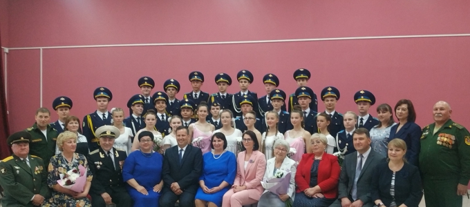 На торжественном мероприятии выпускникам были вручены нагрудные знаки «Выпускник кадетского класса». Вниманию гостей были представлены полонез, вальс и хоровое пение в исполнении выпускников кадетских классов.