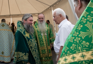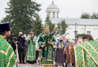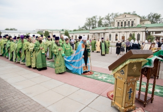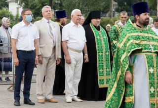 Торжественное богослужение, посвященное Дню основания епархии, наполнено молитвами и духовными песнопениями. Настрой участников Божественной литургии соответствующий – праздничный. Два часа пролетели как один миг. Херувимская, символ веры, Отче наш и причастие всех священнослужителей и прихожан разных храмов, приехавших на это особенное богослужение в наш город.