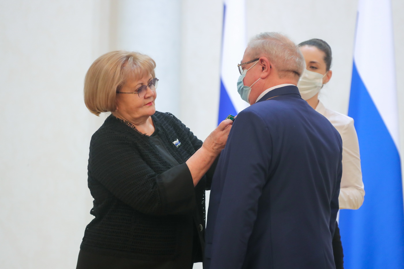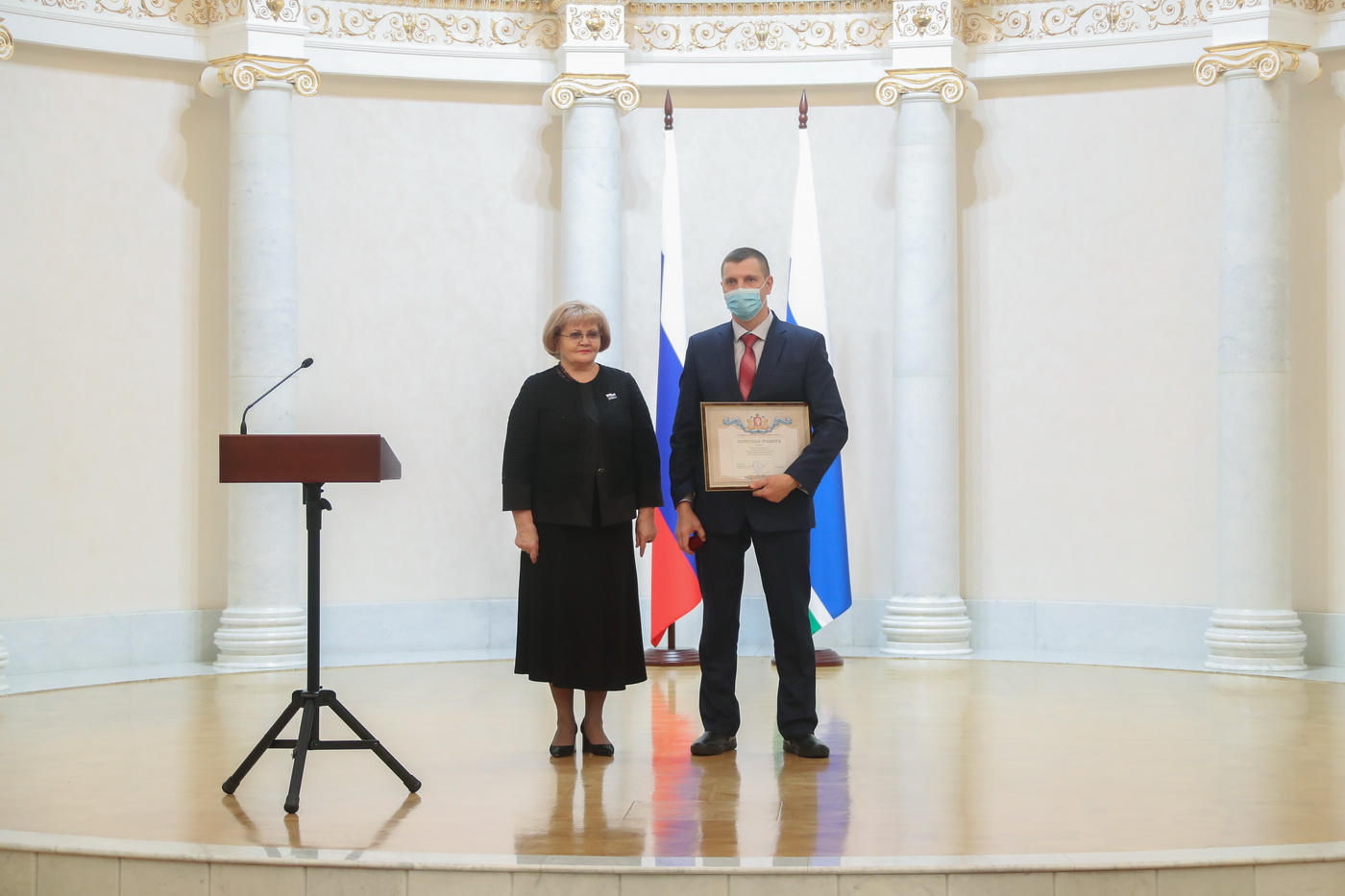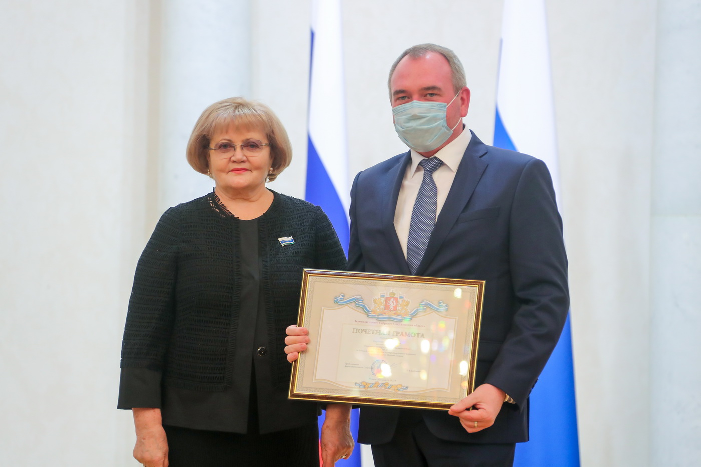 Людмила Бабушкина вручила государственную награду - медаль «За труды по сельскому хозяйству» генеральному директору акционерного общества «Уралплемцентр» Владимиру Мымрину, а также Почетную грамоту и Благодарственные письма Законодательного Собрания наиболее отличившимся работникам сельскохозяйственной отрасли.