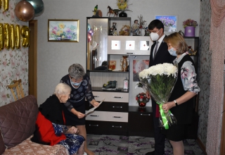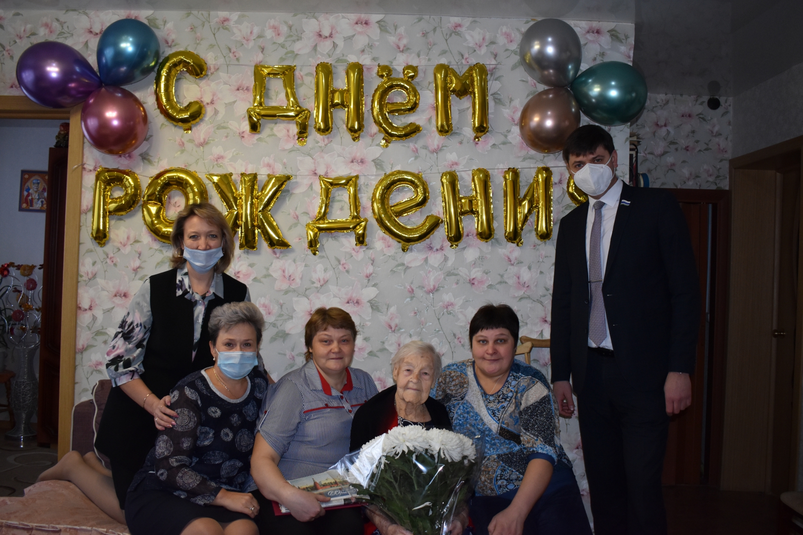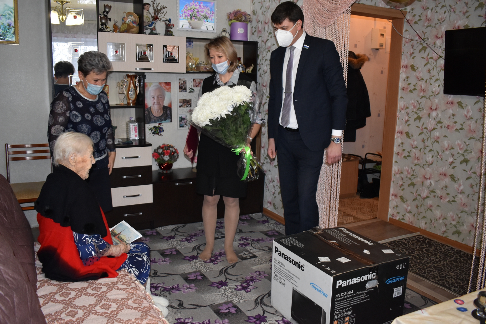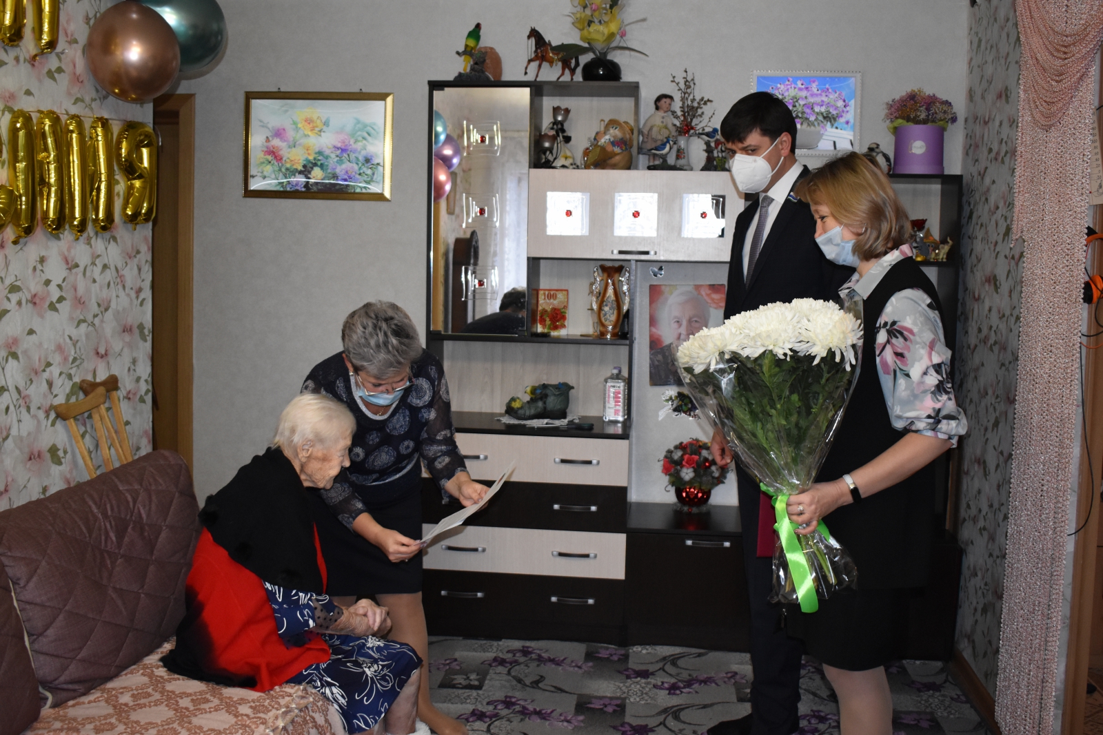 Помимо рабочих моментов Михаил Зубарев выполнил приятную миссию. Поздравил со 100-летним юбилеем Анну Александровну Королёву.
