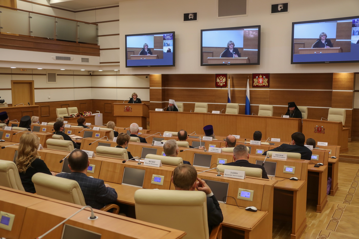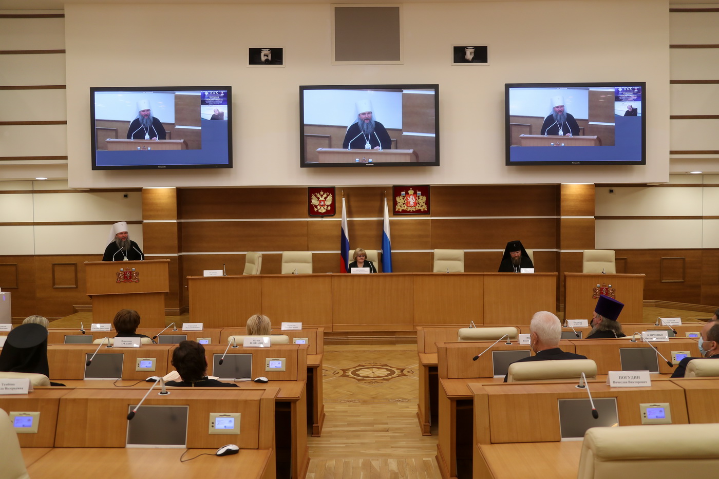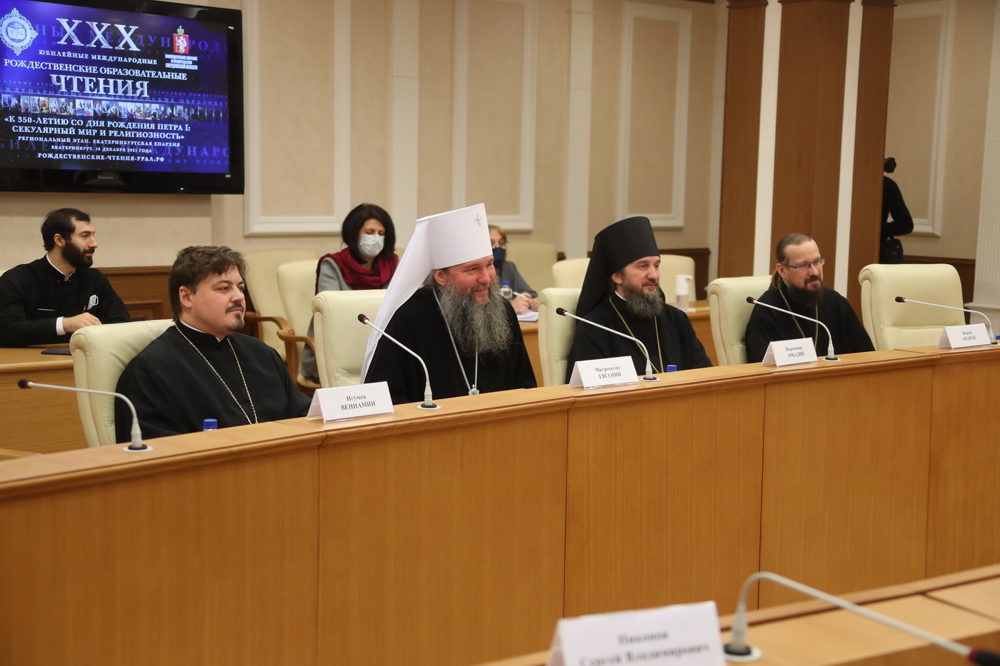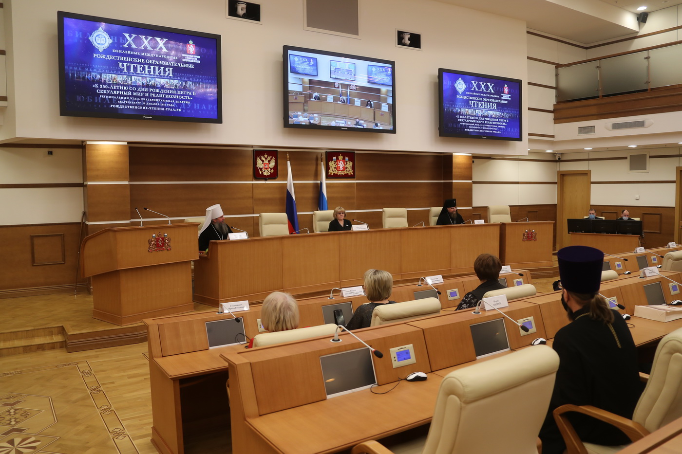 На площадке областного Законодательного Собрания Свердловской области состоялись парламентские встречи регионального этапа XXХ Международных Рождественских образовательных чтений «К 350-летию со дня рождения Петра I: секулярный мир и религиозность». В этом мероприятии приняли участие митрополит Екатеринбургский и Верхотурский Евгений, архиепископ Салехардский и Ново-Уренгойский Николай, депутаты Законодательного Собрания Свердловской области во главе с председателем Людмилой Бабушкиной.