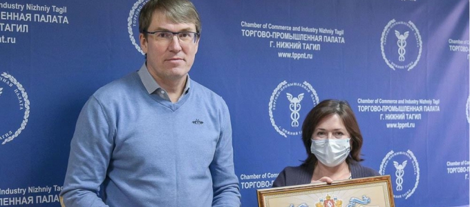 В честь 25-летия Торгово-Промышленной Палаты города Нижний Тагил за большой вклад в развитие предпринимательства депутат Законодательного Собрания Свердловской области Вячеслав Малых вручил Почетную грамоту Законодательного Собрания Свердловской области начальнику управления экспертизы, сертификации и оценке Горбушовой Владе Анатольевне.