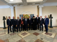 Первый заместитель председателя Законодательного Cобрания Свердловской области Аркадий Чернецкий, Глава Екатеринбурга Алексей Орлов, Председатель Екатеринбургской городской Думы Игорь Володин, митрополит Екатеринбургский и Верхотурский Евгений открыли тематическую фотовыставку, посвященную 30-летию Администрации города.
