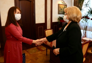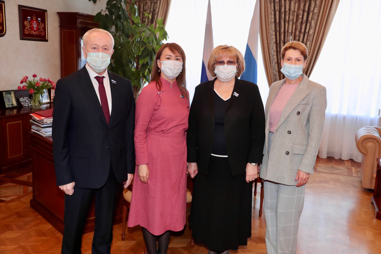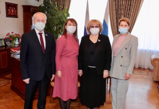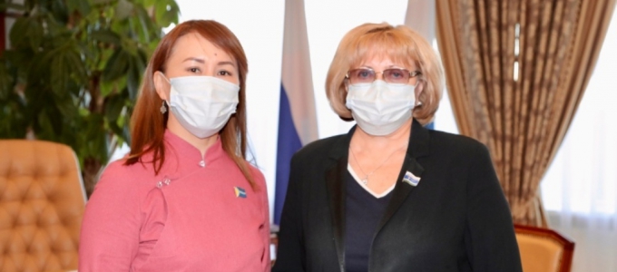 Председатель Законодательного Собрания Свердловской области Людмила Бабушкина провела встречу с заместителем председателя комитета Верховного Хурала Республики Тыва по социальной политике Монгуш Аяной Кан-ооловной. В мероприятии приняли участие председатель комитета Законодательного Собрания Свердловской области по социальной политике Вячеслав Погудин и председатель комитета Законодательного Собрания Свердловской области по молодежной политике, развитию физической культуры, спорта и туризма Елена Чечунова.