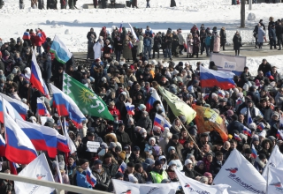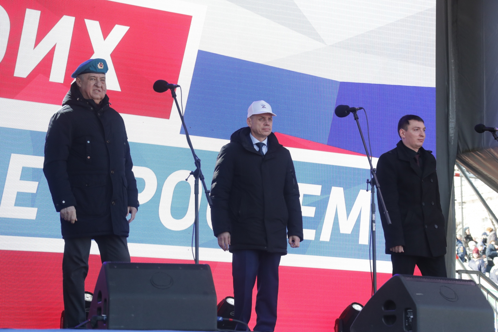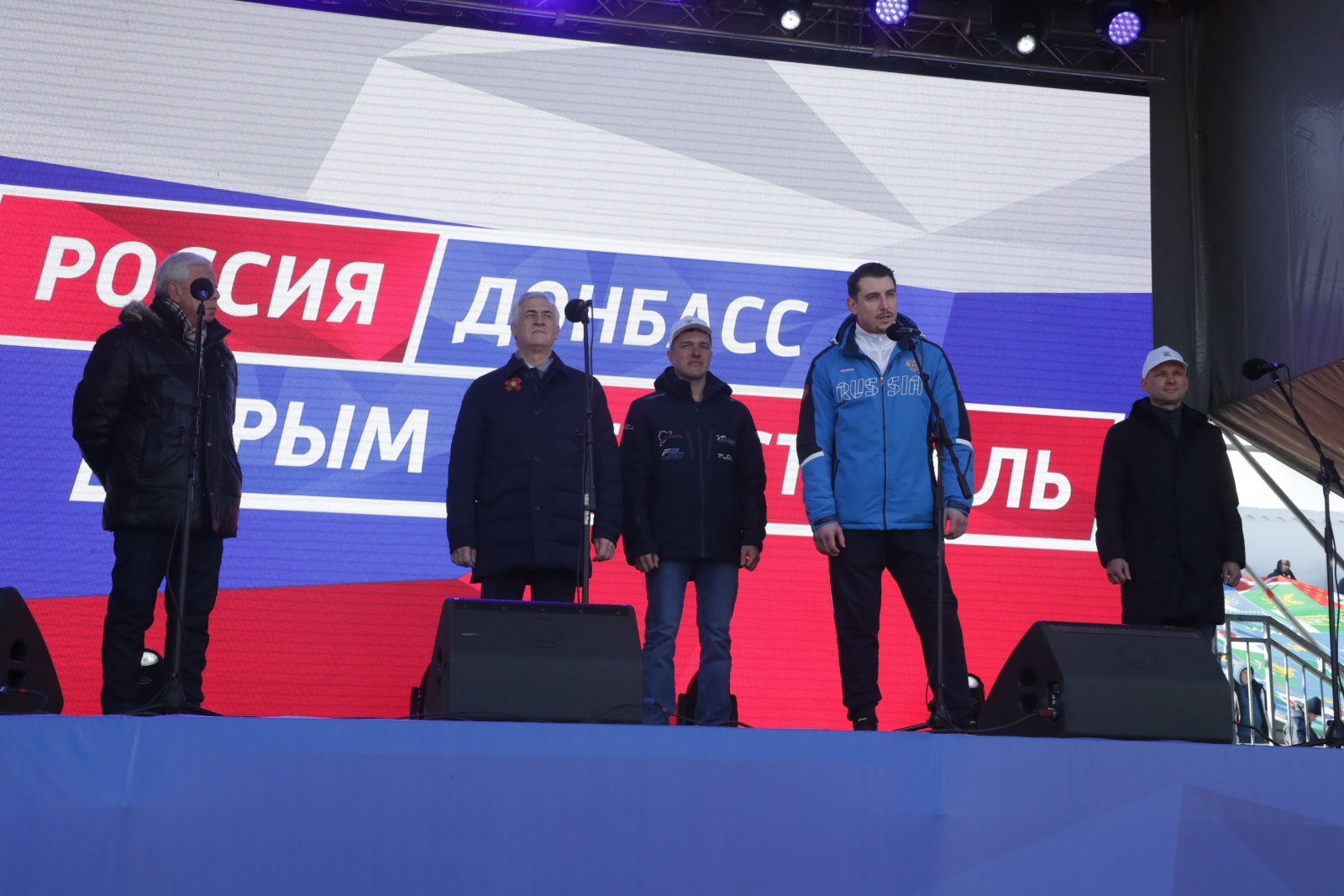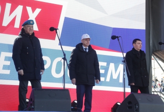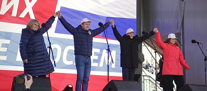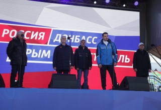 «Сегодня мы отмечаем не только «Крымскую весну». Мы выражаем поддержку жителям Луганской и Донецкой народных республик»,– сказал губернатор Свердловской области Евгений Куйвашев.