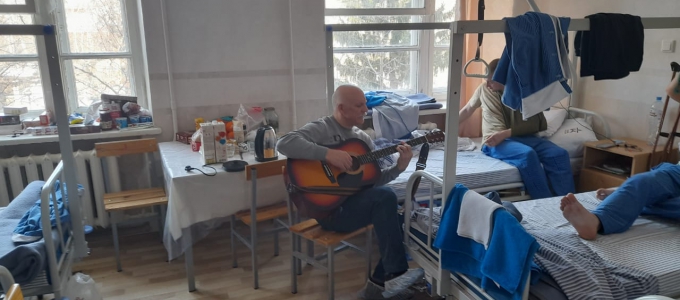 За чашкой чая поговорили о беспокойстве близких, поддержке со стороны гражданского населения, планах после выздоровления. Приятным времяпровождением были песни, прозвучавшие под гитару. А чтобы время лечения ран шло быстрее, от депутата был подарен телевизор и DVD-плеер с пожеланиями скорейшего выздоровления.