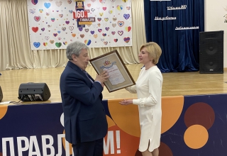 Аркадий Чернецкий вручил коллективу Гимназии №9 Почетный диплом Законодательного Собрания Свердловской области «За большой вклад в обучение и воспитание подрастающего поколения» и пожелал дальнейших успехов в благородном педагогическом труде.