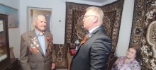 В Качканаре парламентарий поздравил с Великой Победой живую легенду, фронтовика, орденоносца 100-летнего Сергея Васильевича Кадачикова, в Баранчинском – не менее именитого участника ВОв 98-летнего Николая Афанасьевича Вдовина. В Верхней Туре Сергей Никонов навестил тружеников тыла, проживающих в Доме-интернате для инвалидов. Каждому из них вручил цветы и подарки, каждому адресовал искренние слова поздравлений и объятия.