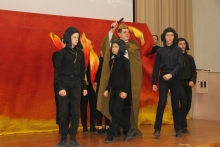 В гости к лицеистам пришли двадцать пять активистов Совета ветеранов войны, труда, вооруженных сил и правоохранительных органов Верх-Исетского района во главе с председателем Фаиной Посредниковой. Среди них был участник Великой Отечественной войны, фронтовой радист 98-летний Николай Власов. В актовом зале юные артисты подарили ветеранам театрализованное представление «Подвиг Урала». Самым волнующим моментом стало прохождение «Бессмертного полка» учащихся всех классов во внутреннем дворе лицея. А потом ребята исполнили «Вальс Победы».